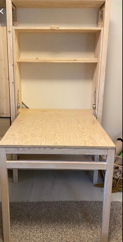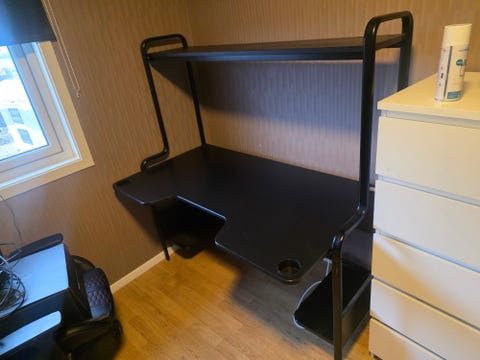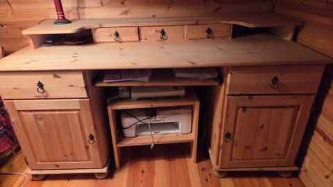Skrivebord i furu gies bort