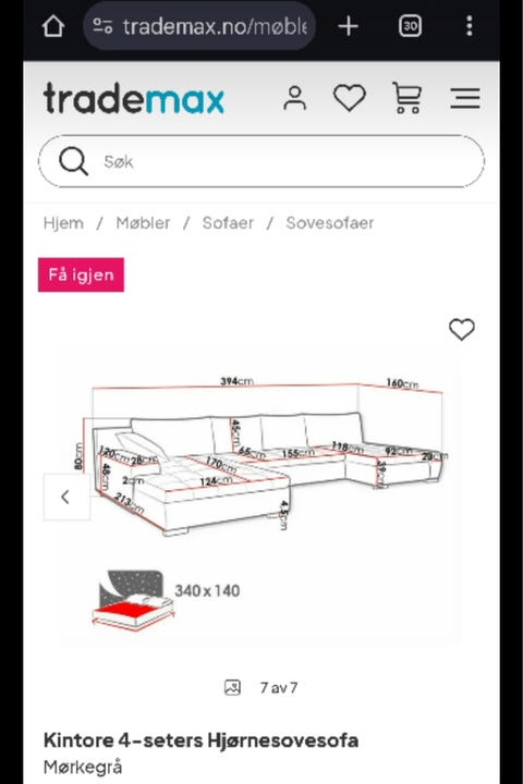 Hjørnesofa ønskes kjøpt