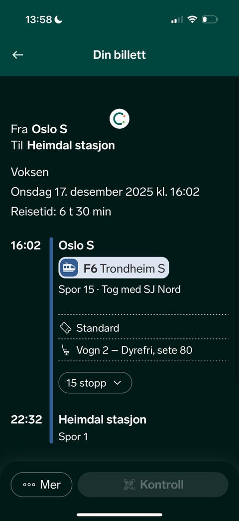 Togbillett Bergen-Geilo