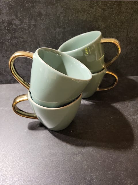 Grønne krus med gullhank