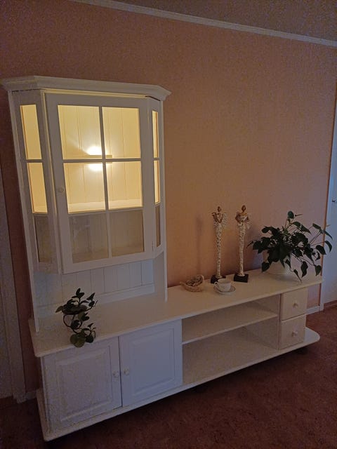 Vitrineskap, sjenk og speil