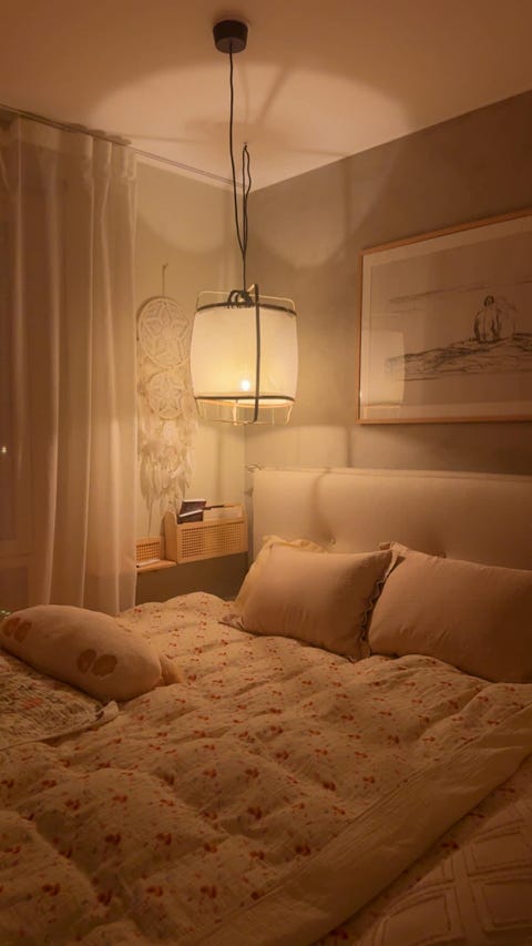 Taklampe (i bambus, hvit stoff)