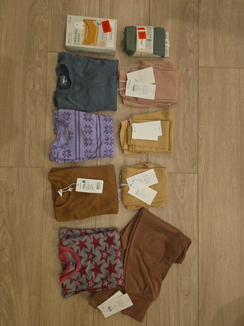 Klespakke 62-68 (4-6 mnd), i ull og bomull. Flere vakre sett og kombinasjoner!