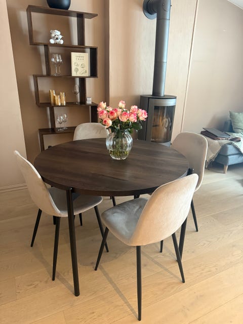 Venture Home spisegruppe rundt bord med 4 stoler brun og svart Nesten ikke brukt