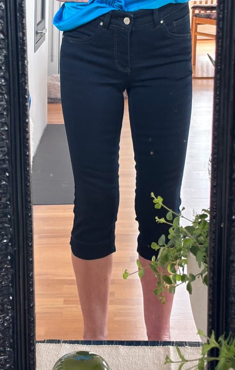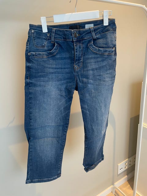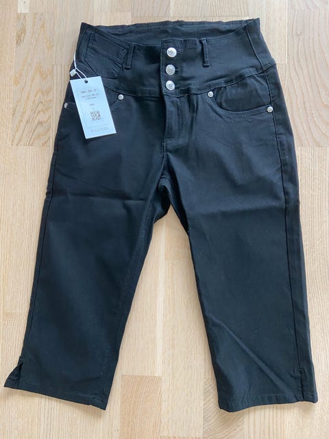 Kortbukse capri i lin/viskose - med broderier - størrelse 140, 9-10 år - som ny!