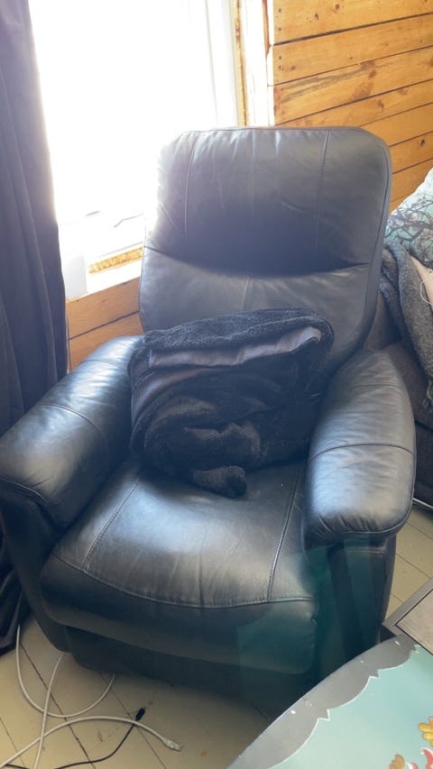 Skinn sofa gis bort