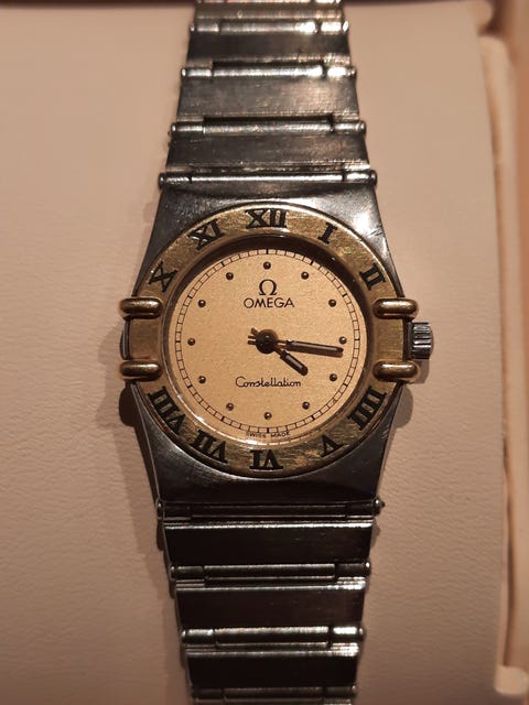 OMEGA DAMEKLOKKE I GULL OG STÅL