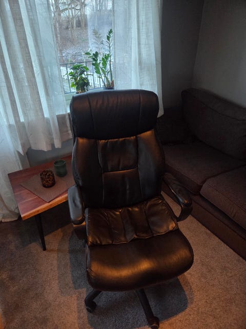 God brukt kontorstol gis bort