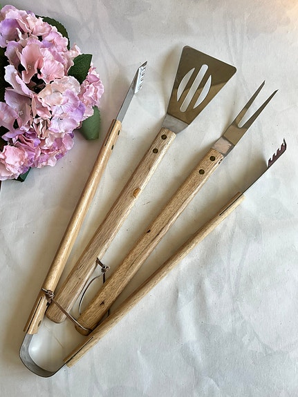 Grillsett tre deler, grillspyd/grillspade/grilltang, med trehåndtak