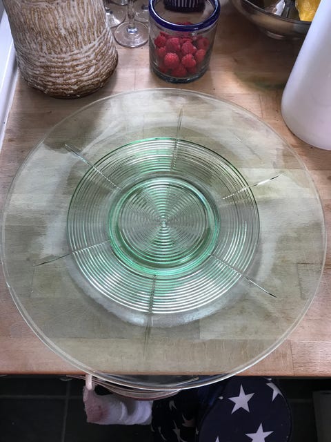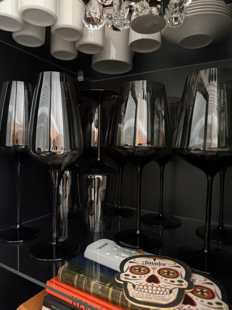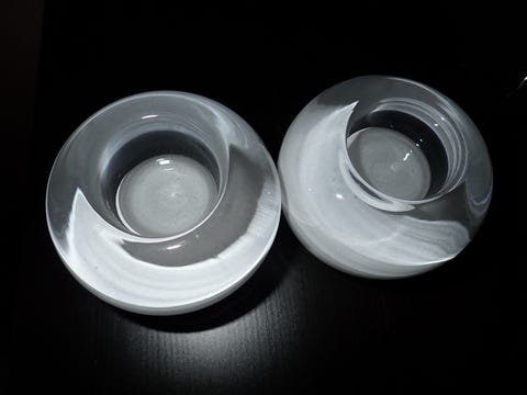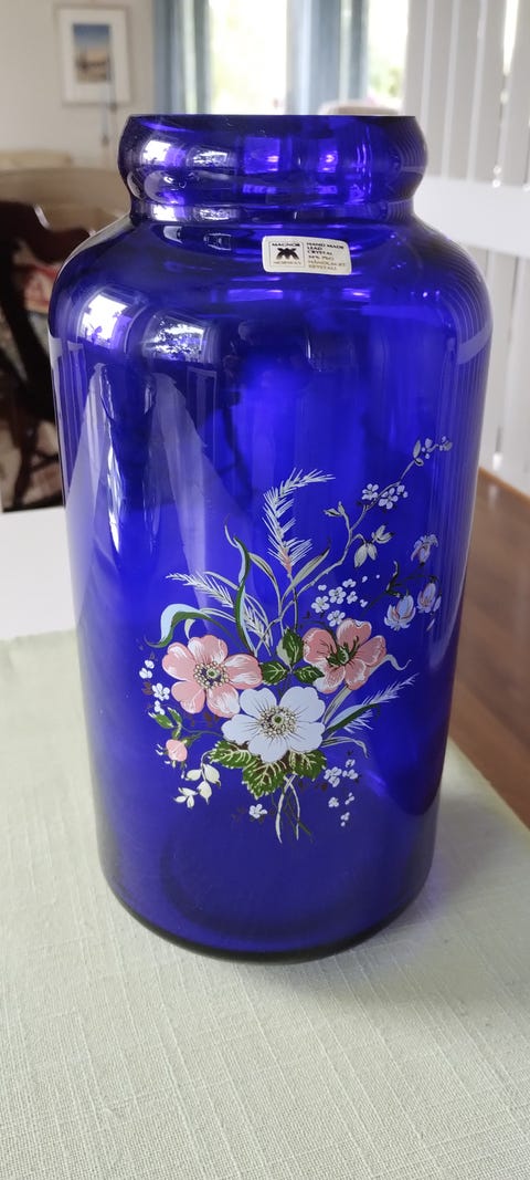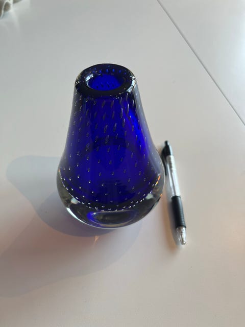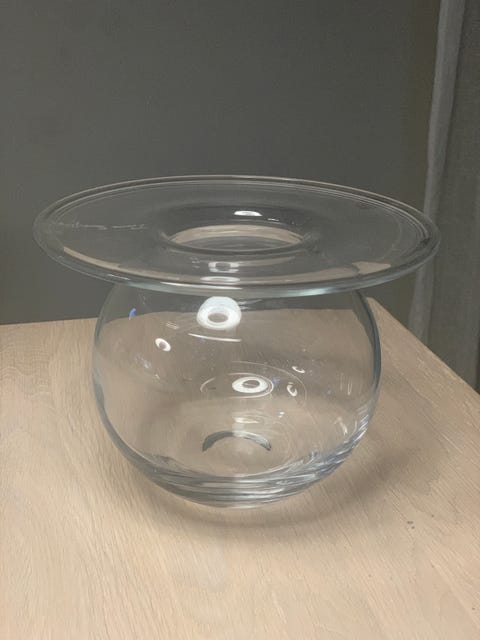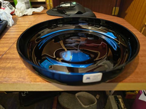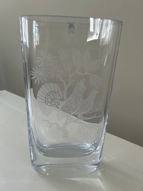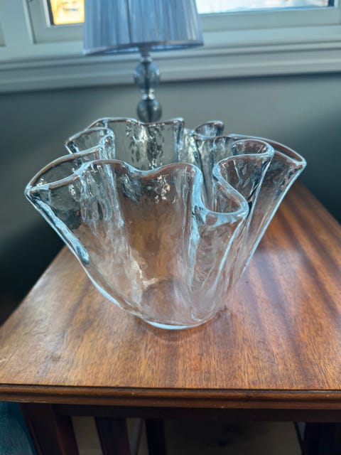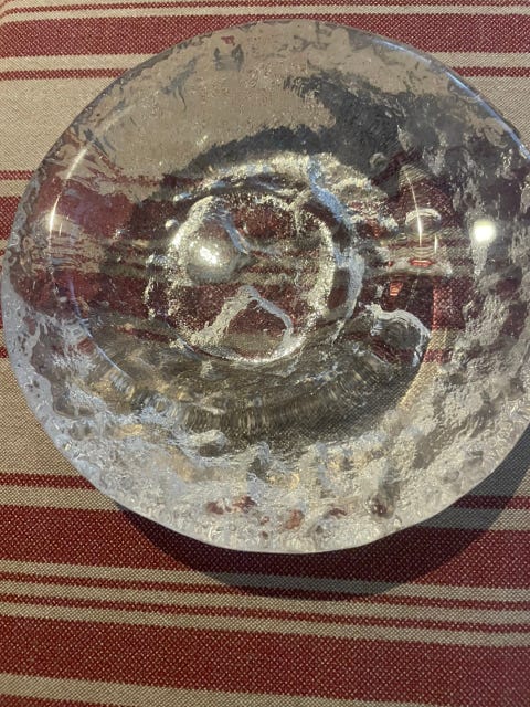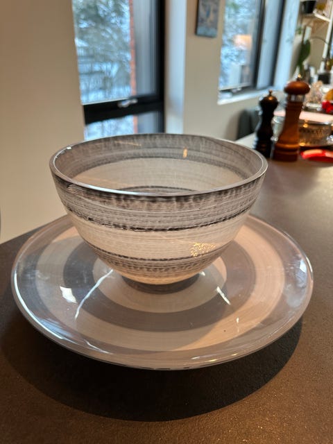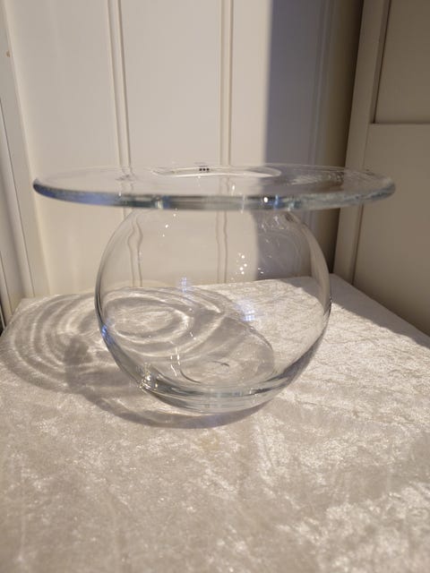 Håndlaget svart Krystallglass fat/skål med blomstersliping fra Magnor Glassverk