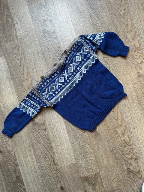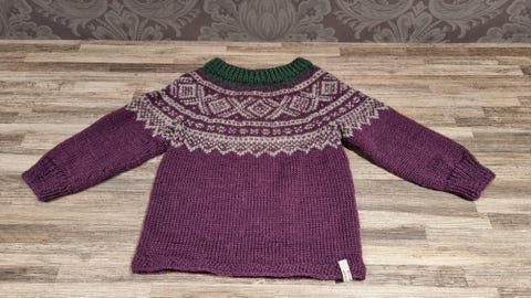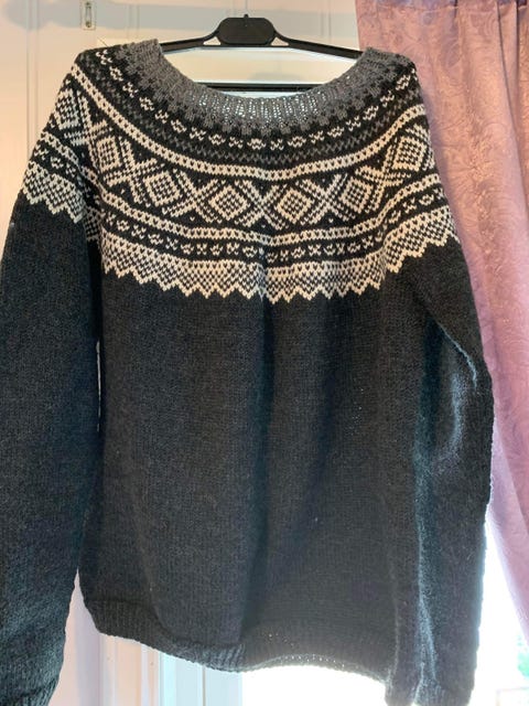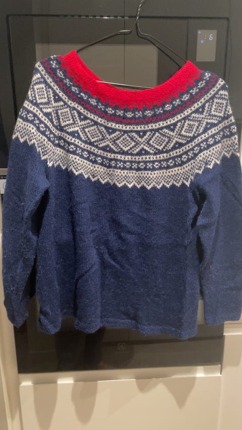 Ny hjemmestrikket Mariusgenser med rådyr,5-6 år(110/116)100% tm ull,gutt/jenter