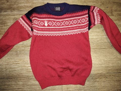 Ny hjemmestrikket Bambi/Mariusgenser m rådyr,6-7/8 år,100% tm ull,gutt/jenter