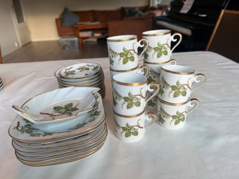 Royal Copenhagen musselmalt halvblonde kaffekopp med underskål og tallerken