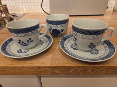 Royal Copenhagen Musselmalet Kaffekopp og Tallerkener Blått og Hvitt Porselen