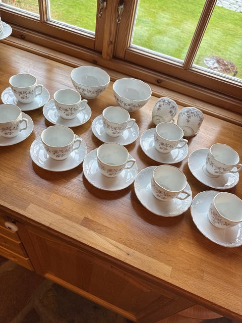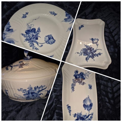 Royal Copenhagen musselmalt halvblonde kaffekopp med underskål og tallerken