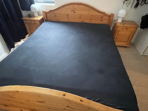 Seng med sengegavl i tre