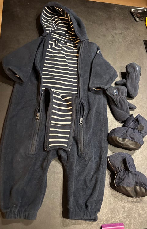 Polarn O. Pyret vindfleece, votter, tøfler – str. 80 / blå 💙