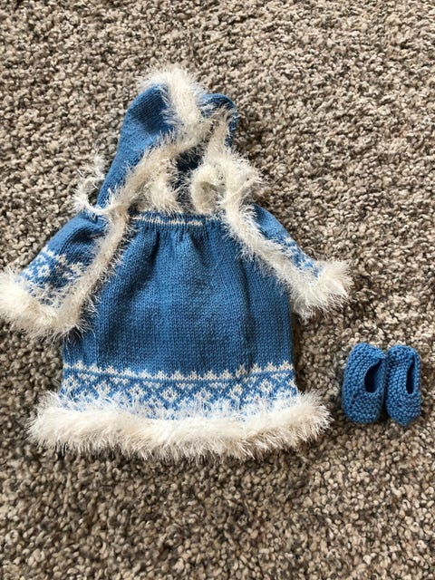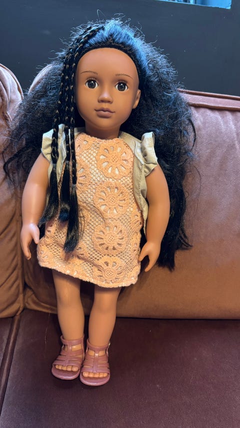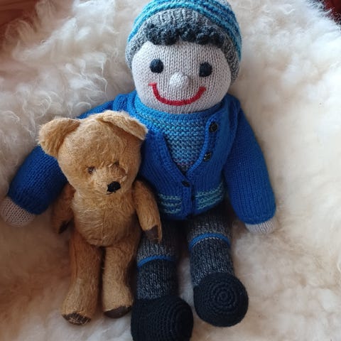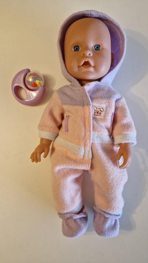 Dukke med klær og leke