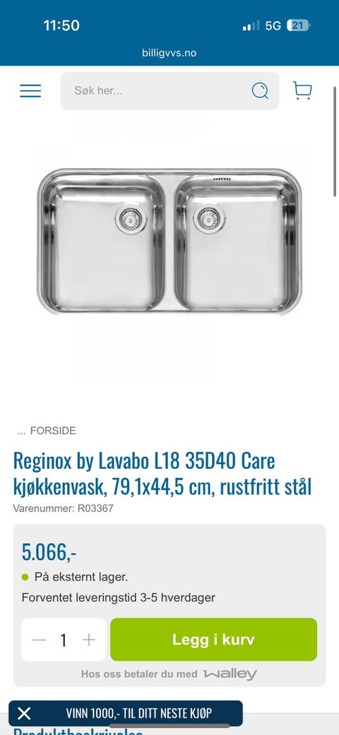 Helt ny kjøkkenvask