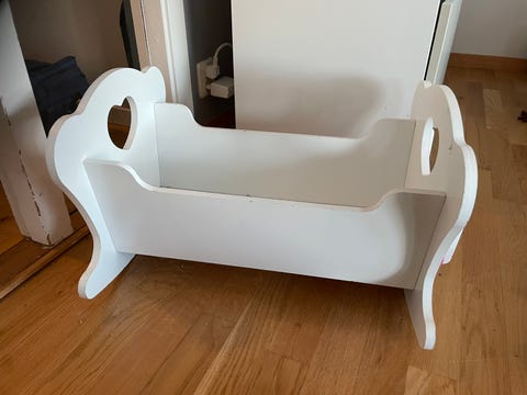 Vugge, trehvit, aldri brukt.