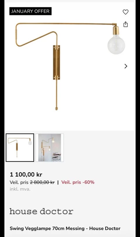 Vegglampe selges