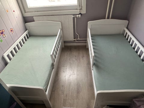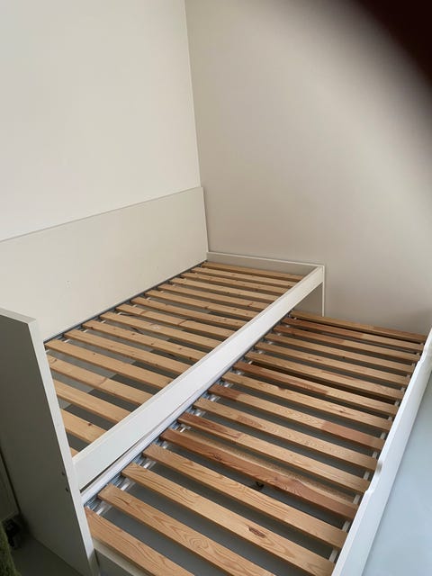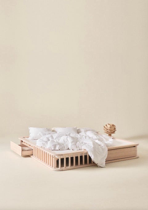 Seng med skuffer enkel grå