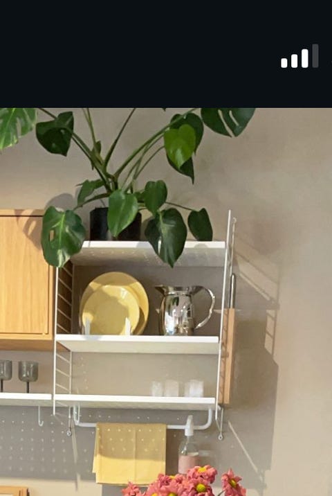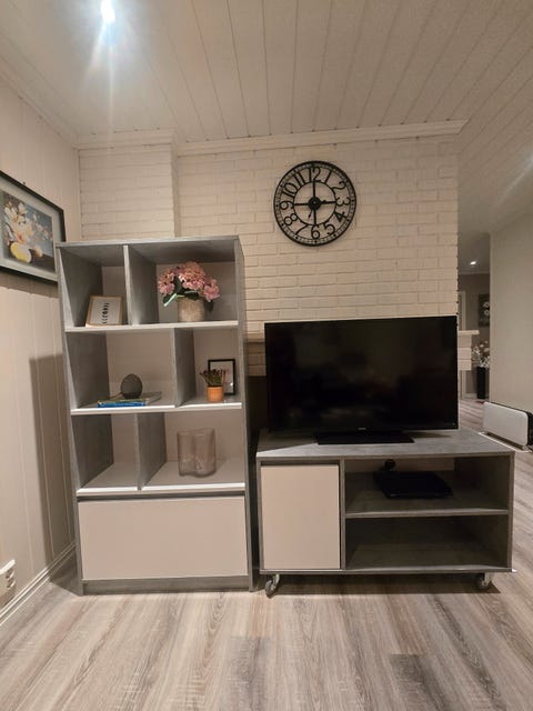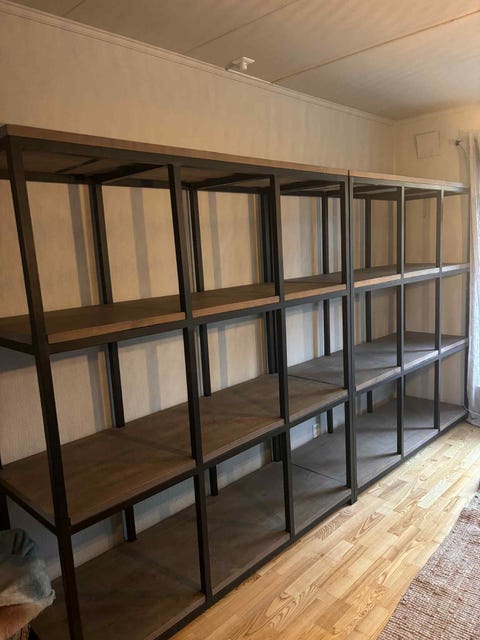 Stor vegghylle.