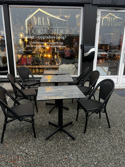 6 stoler og 3 bord