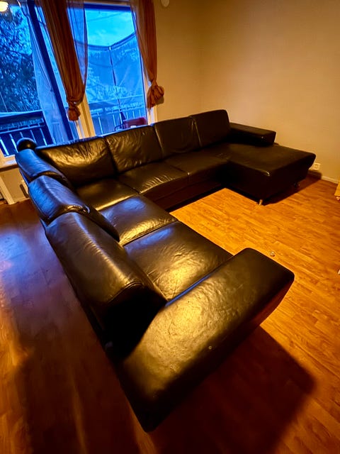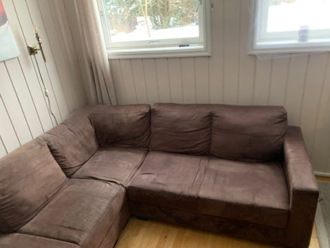 Sovesofa med sjeselong gis bort