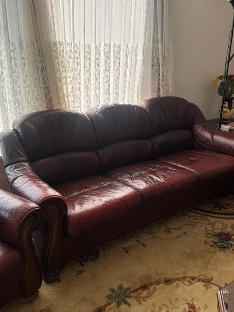 2 seter skinnsofa.