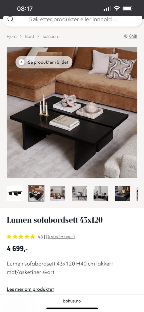 Svart sofabord Hødnebø