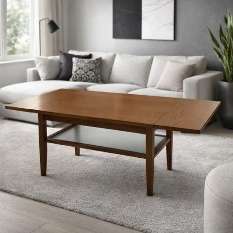 Sofabord i glass med mørkt tre