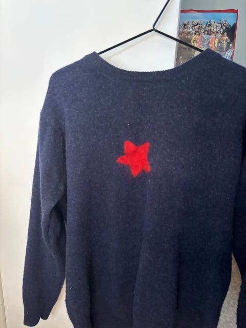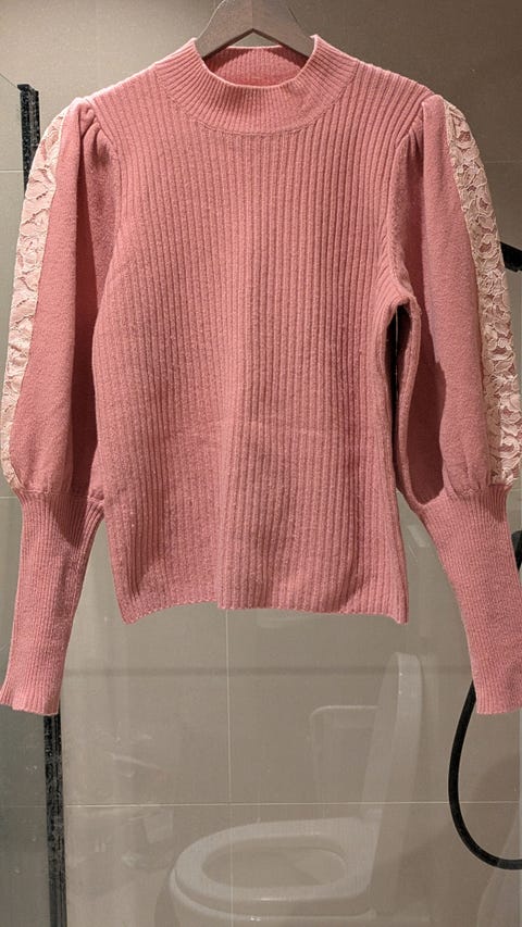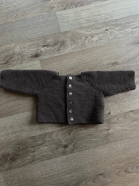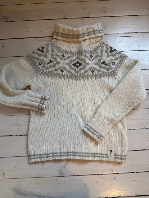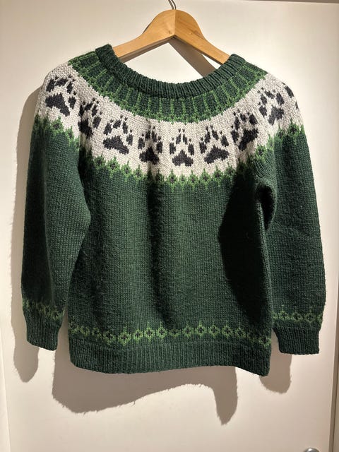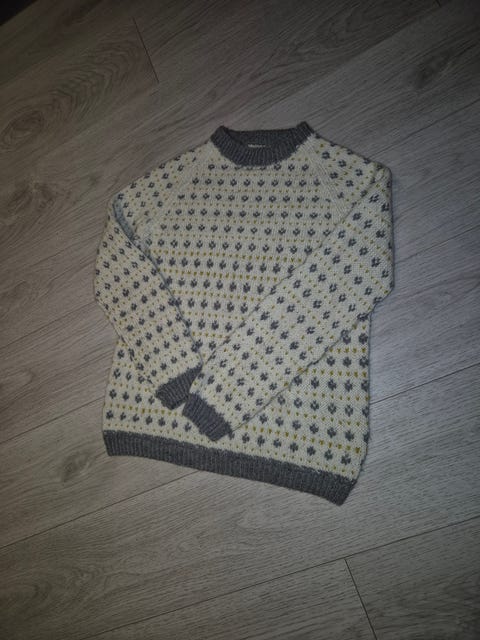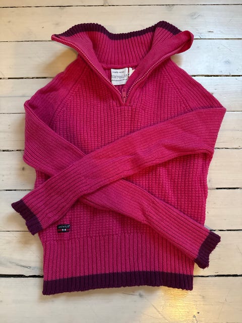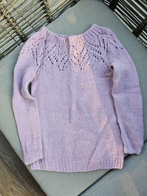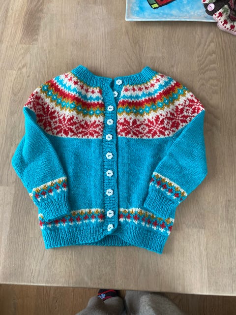 Hjemmestrikket ullgenser i "Rosa sløyfe" med litt glam, for liten prinsesse.