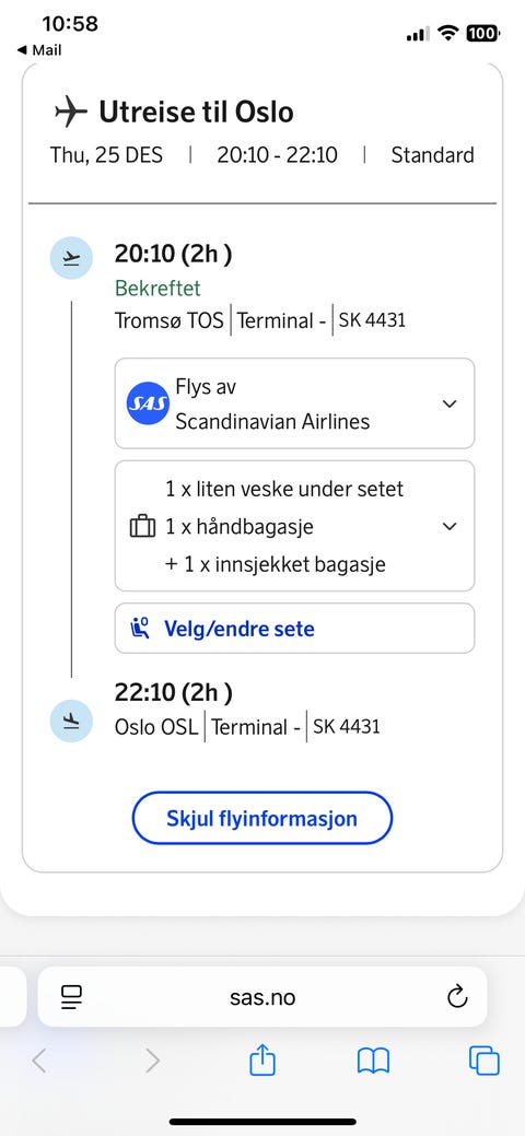 Flybillett Tromsø —> Bodø 22.Des