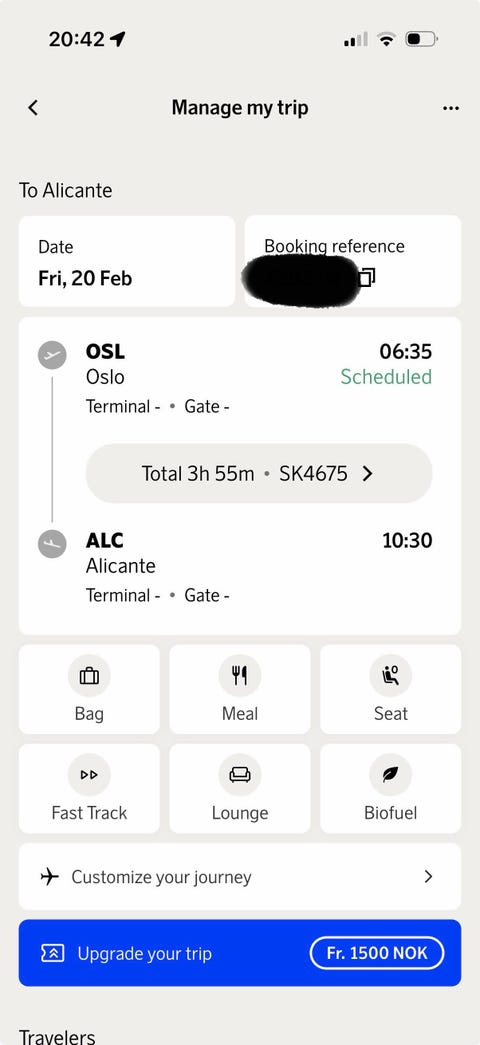 Nice - Oslo 12.juli 20:25 SAS