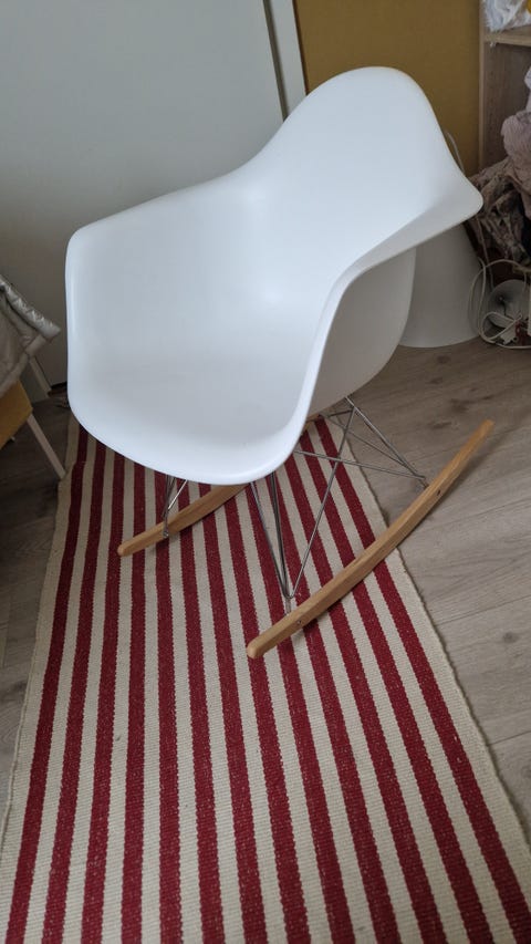 ØNSKES KJØPT Hødnebø stol med rødrutet ullstoff