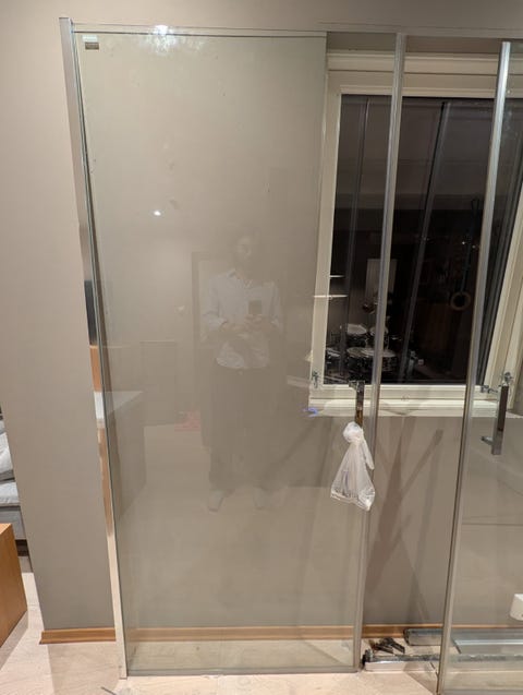 Badstudør i røykfarget glass