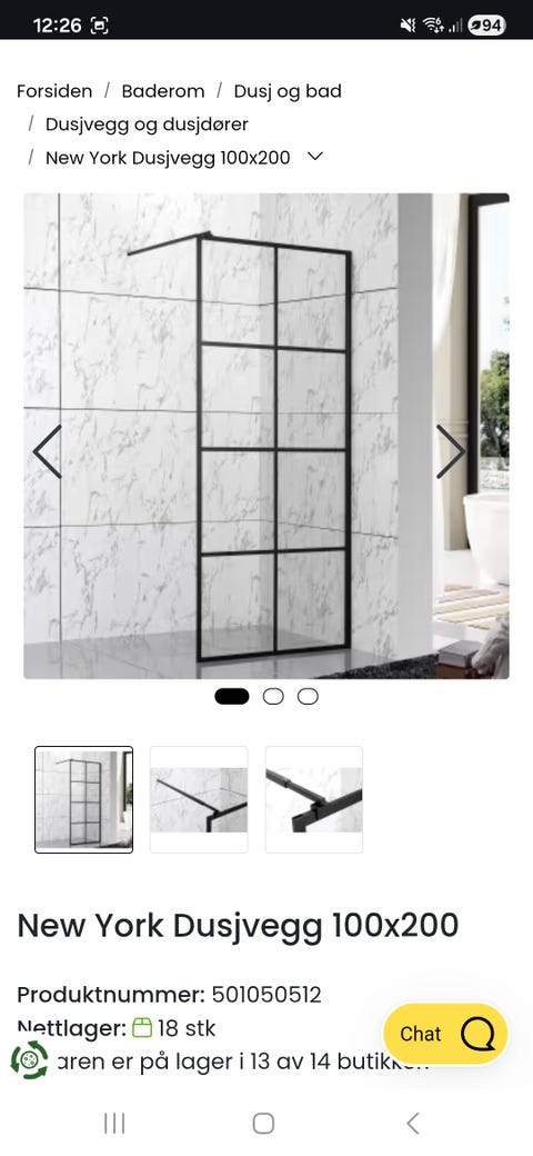 Dusj vegg til badekar