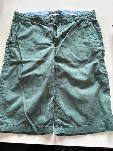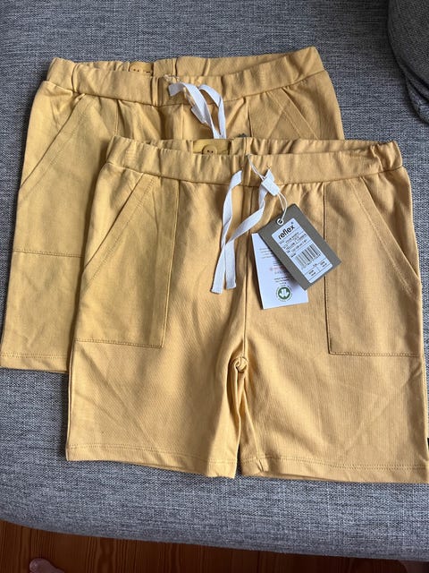 Gullkorn og Hust & Claire shorts i bomull khaki og blå til barn str 86-92 og 92