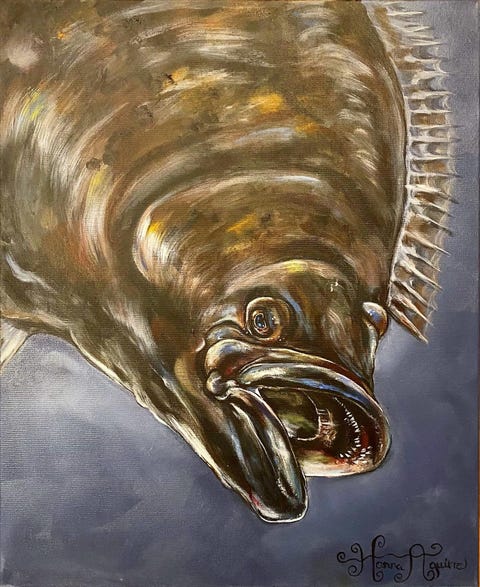 Kveite fisk maleri på lerret
