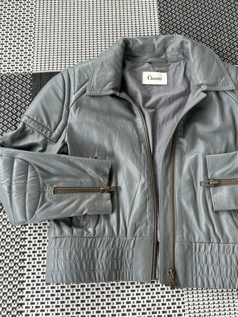 Grå skinnjakke fra Ganni