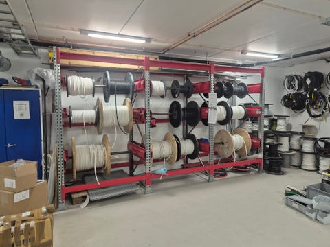 Reol for kabeltromler med bæreakser