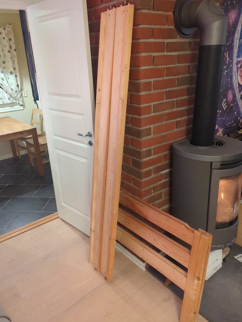 90x190cm seng i treverk.