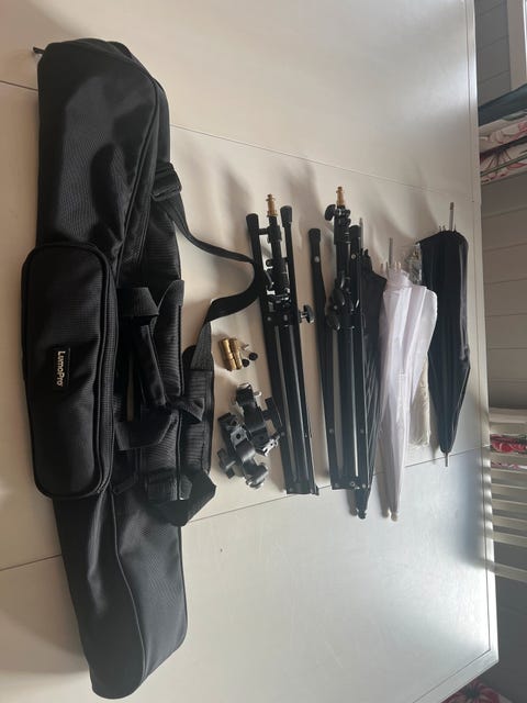 Studioutstyr og 3 fotobakgrunner