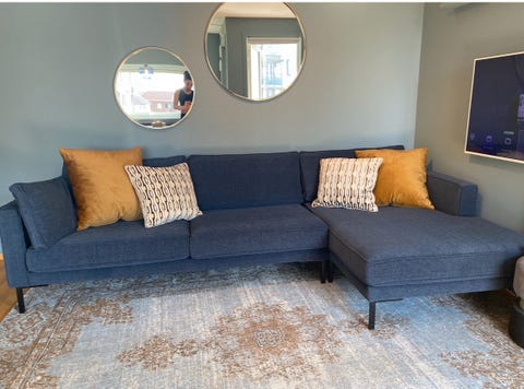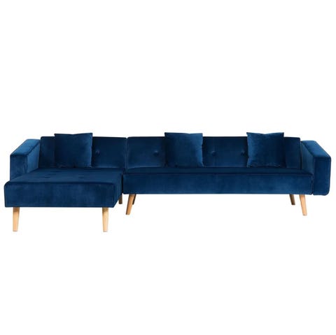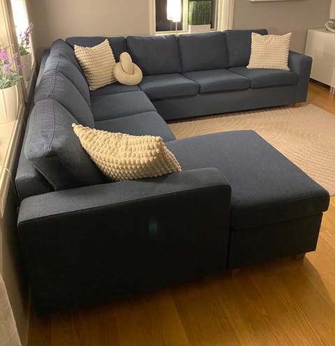 Marineblå sofa med sjeselong