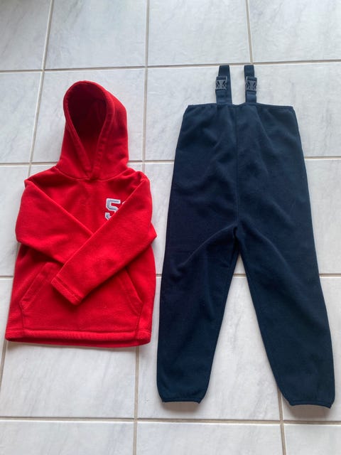 Name it fleece bukse med sele og fleece hettegenser fra Cubus. Str. 104