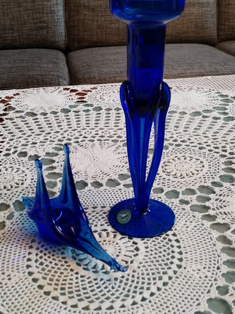 Blått kunst glass