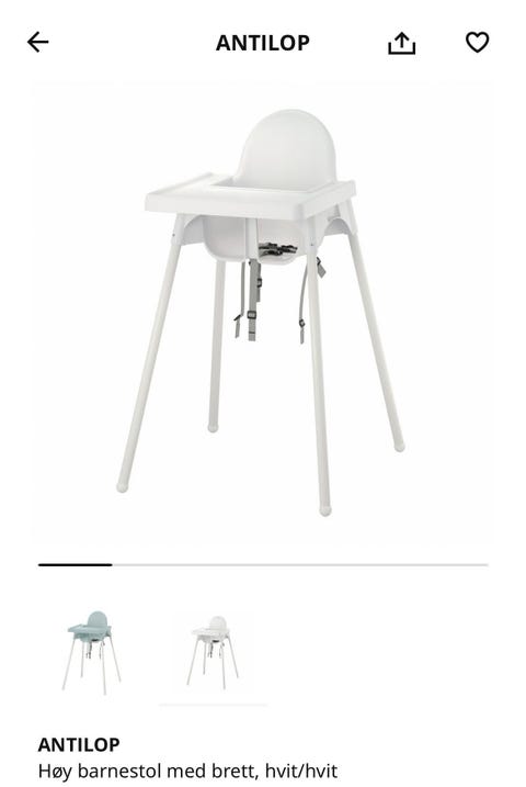 Antikviteter og kunst (338)Dyr og utstyr (23)Elektronikk og hvitevarer (743)Foreldre og barn (6 117)Fritid, hobby og underholdning (298)Hage, oppussing og hus (2 446)Klær, kosmetikk og tilbehør (169)Møbler og interiør (42 739)Næringsvirksomhet (257)Sport og friluftsliv (31)Utstyr til bil, båt og MC (17)