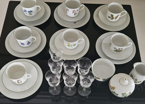 Kaffeservise 8 fat og 6 kopper