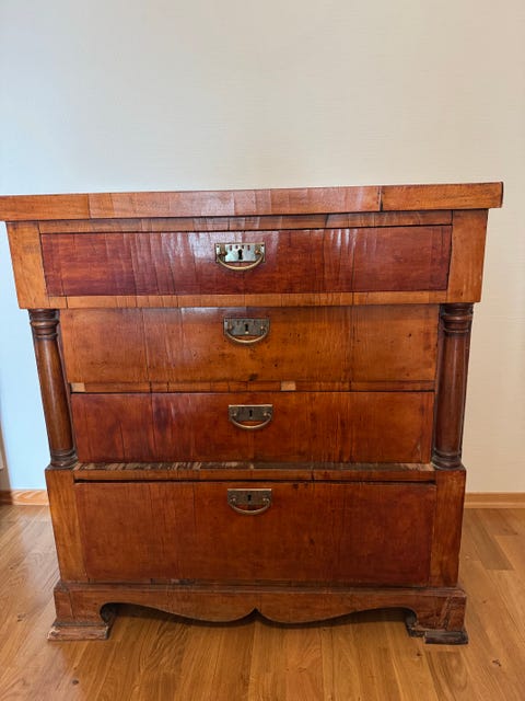 Gammel kommode med fire skuffer